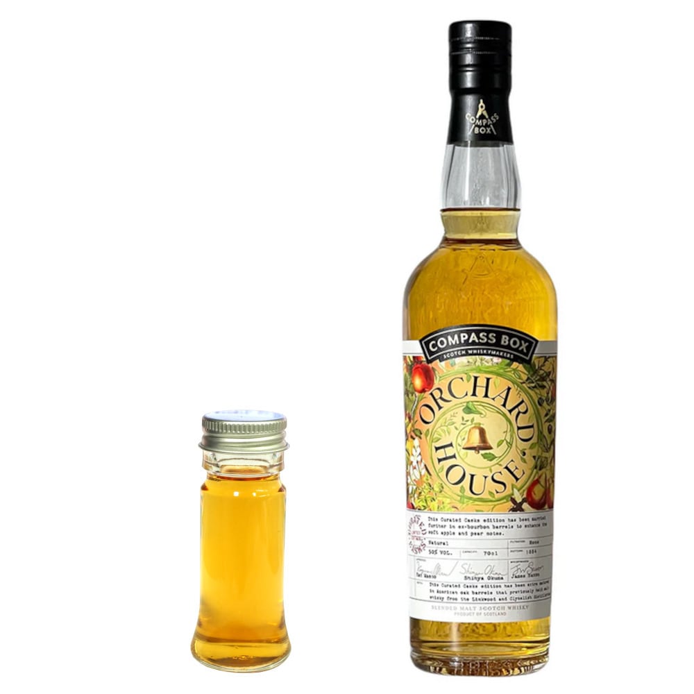 昨年発売したバッチ1では、定番品のスタイルを残しながらもよりフルーティにすべく、それぞれの蒸留所及び熟成した樽の構成はほぼそのままながら、通常より平均熟成を長くしました。そして今回のバッチ2では、よりその個性を強くするべく、主なレシピの構成は変えずにブレンドした後、クライネリッシュとリンクウッドを熟成したファーストフィルバーボン樽で26ヵ月間マリッジ(フィニッシュ)をかけました。度数もバッチ1の50%よりやや高い50.4%で瓶詰め、日本市場だけのオリジナルレシピのオーチャードハウス第2弾が誕生しました。色は深いゴールデンカラー、香りは青リンゴ、洋梨、バニラ、バナナ、味はソフトでスウィート、ワクシー、リンゴ、バニラ、アップルキャンディー、洋梨、ゆっくり柑橘ピールのビターと僅かなスモーク、フィニッシュは茶葉のソフトなビターが続きます。度数はファーストとほぼ同じ50.4%で、スタンダードに比べフルーティさを残しながらボディを豊満にすることを追求した度数でボトリング。平均熟成はファーストに比べて長くなり、さらにフルーティでありながら飲み応えのあるリッチなボディに仕上がっています。